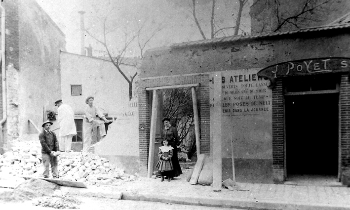 C’est en 1895, le 28 décembre très exactement, qu’eut lieu à Paris la première représentation du Cinématographe Lumière. Trente trois spectateurs seulement y assistaient, dans le Salon Indien, au sous-sol du Grand Café. Et très curieusement, ce fut Bencque, chez qui travaillait alors Jean Poyet qui, à la demande des Frères Lumières rechercha des salles afin de multiplier les séances. Sur l'image de droite, on voit Jean Poyet à l'entrée de la salle. |